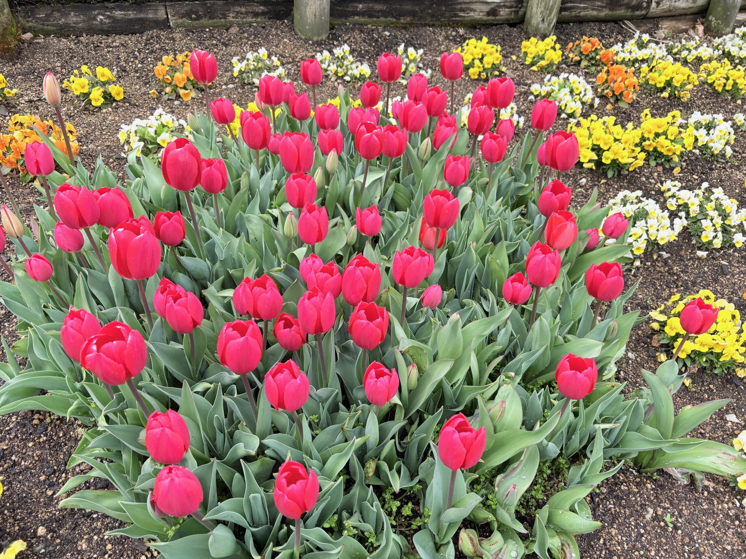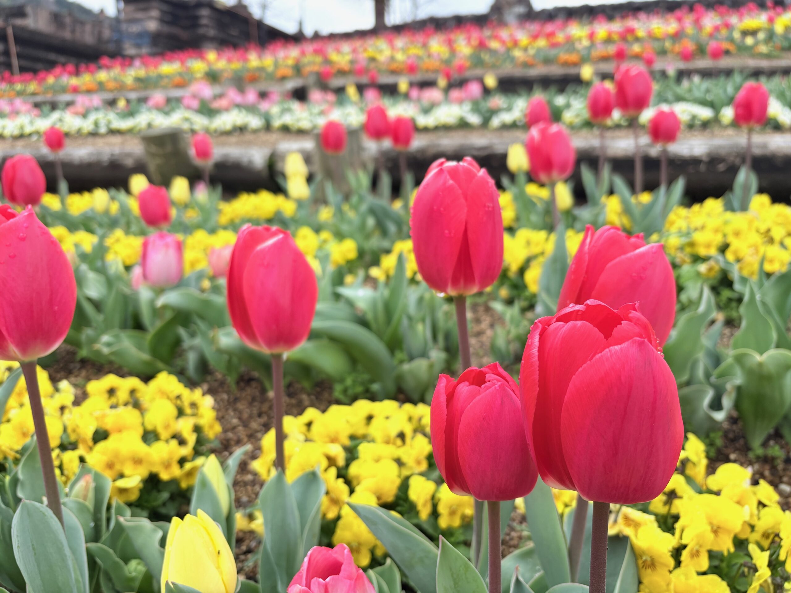 一面がビオラとチューリップで彩られる“フラワーガーデン”では、只今チューリップを育成中です♪