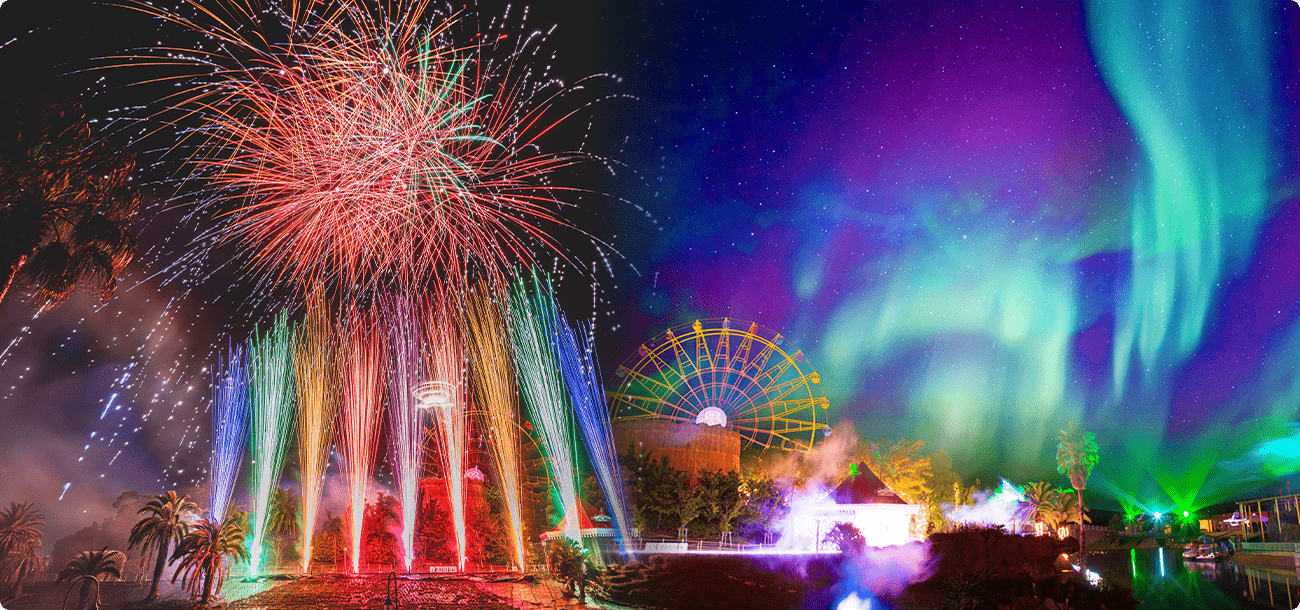 - 花火ファンタジアは、風速10km上の強風がある場合、上空に雷雲が発生した場合、各警報発動され、花火実施に危険が伴うと判断された場合、また風向きによっては、安全確保のため、やむを得ず中止や観覧エリア規制等をさせていただく場合がございます。尚、中止になった場合の入園チケットのご返金等は一切致しかねます。予めご了承ください。